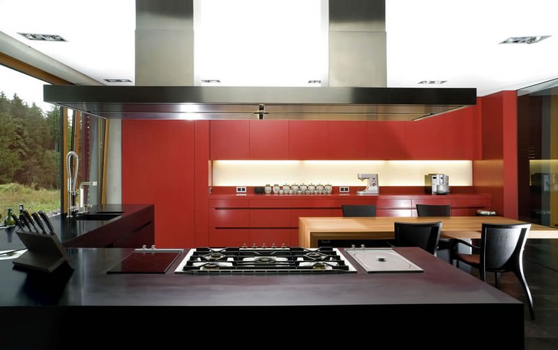 Đá solid surface S025 Fiery Red ứng dụng làm ốp bàn bếp
