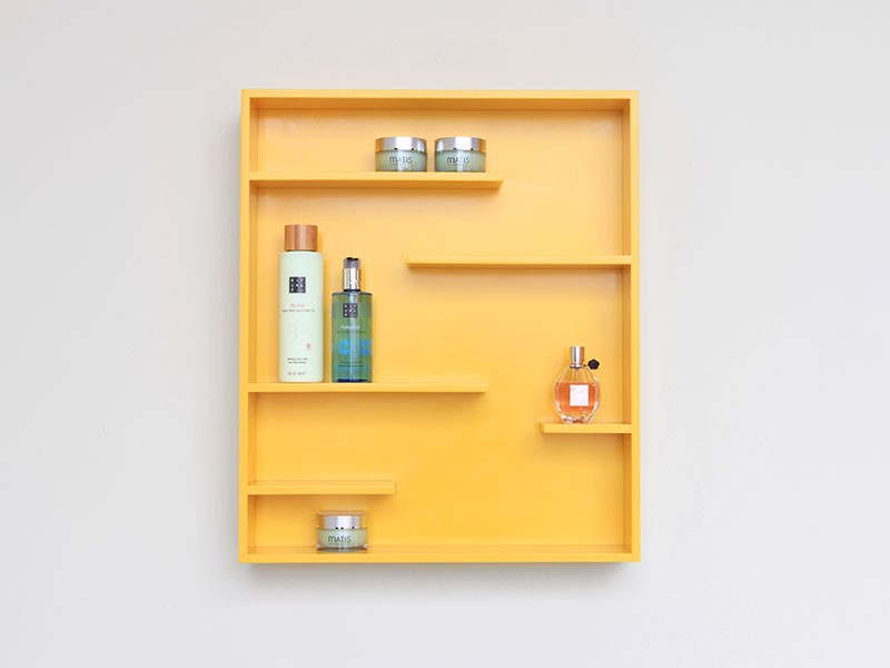 Để làm điểm nhấn cho không gian sống, biến mọi thiết kế đơn giản bớt phần đơn điệu, các kiến trúc sư sử dụng đá solid surface S026 Banana làm kệ đựng đồ. Trên mảng tường đơn sắc, kệ tủ thực sự bắt mắt, vừa đảm bảo công năng vừa đảm bảo tính thẩm mỹ.