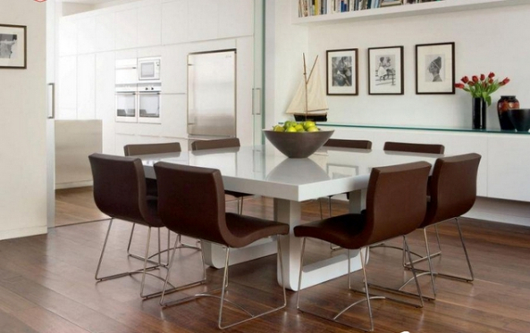 Đá nhân tạo T017 Andromeda được ứng dụng làm bàn ăn, nhờ khả năng liên kết liền mạch, mặt bàn trơn tru và không có một vết nối. Tạo hình uốn cong liên kết với mặt bàn với trụ đỡ được gia công hoàn hảo, cả bàn ăn và không gian bếp được liên kết mạch lạc mà vẫn tạo ra được các khu vực riêng biệt cho từng hoạt động.