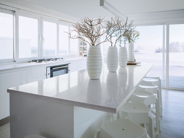Đá solid surface VW01 Gemini ứng dụng làm bàn bếp mang đến không gian tươi mới, và sang trọng