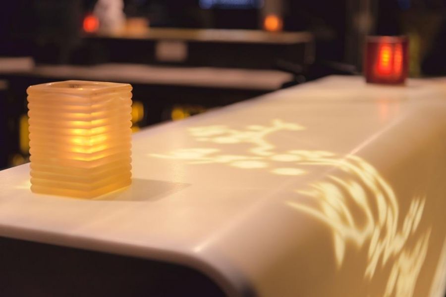 - KHẢ NĂNG XUYÊN SÁNG ẤN TƯỢNG: Với một số màu sắc và độ dày nhất định, đá nhân tạo HI-MACS thể hiện khả năng xuyên sáng đặc biệt khi tiếp xúc với ánh sáng. Việc kết hợp giữa kết cấu và hoa văn khác nhau có thể tạo nên hiệu ứng xuyên sáng khác nhau.