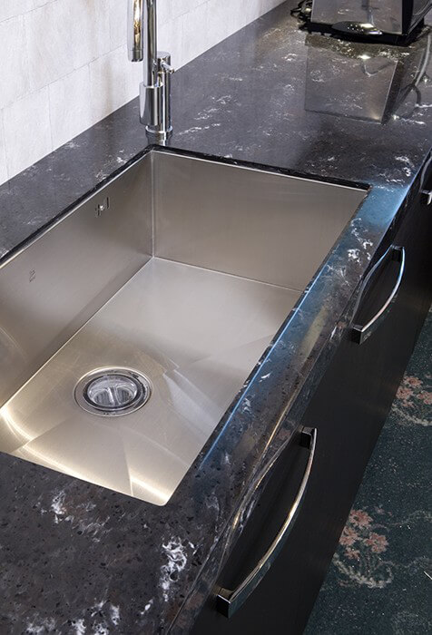 Đá nhân tạo solid surface M206 Monza ứng dụng làm ốp bàn bếp cho diện tích mặt bàn liền khối, mặt đá tối màu tạo cảm giác sạch sẽ dễ vệ sinh. Đặc biệt M206 Monza được chứng nhận đảm bảo vệ sinh an toàn thực phẩm, chất liệu khiến người sử dụng an tâm khi vào bếp.
