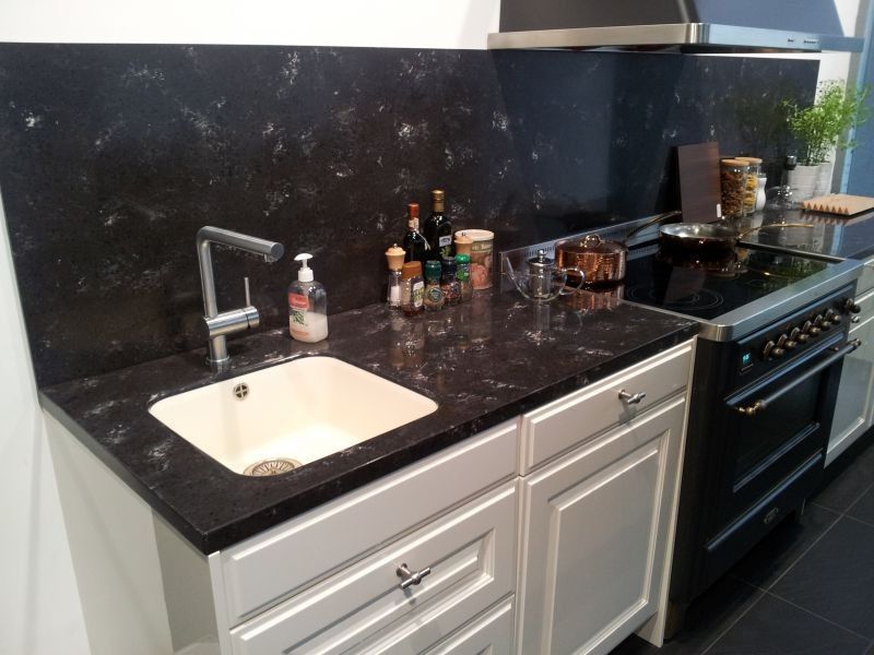 Đá nhân tạo solid surface M206 Monza ứng dụng làm ốp bàn bếp