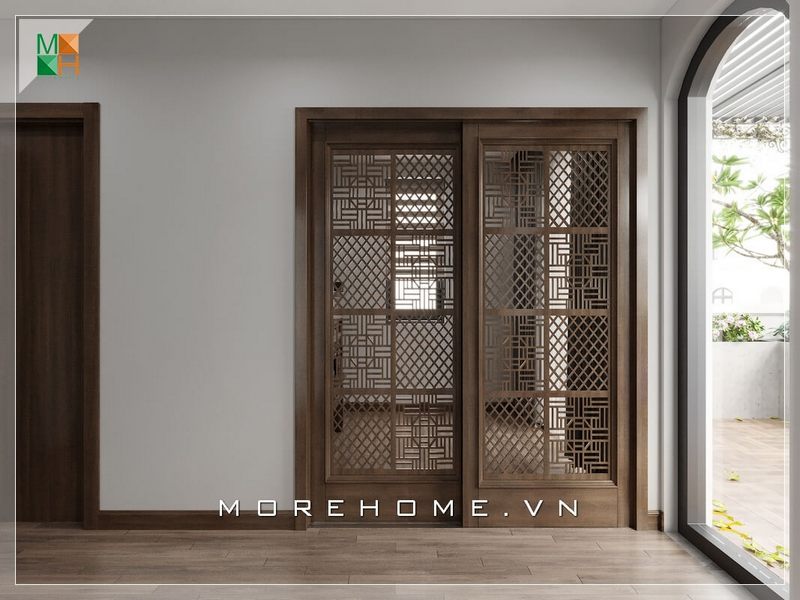 Thiết kế cửa đẹp nghệ thuật từ gỗ óc chó nâu cao cấp là lựa chọn hoàn hảo cho mọi không gian của biệt thự, nhà phố.