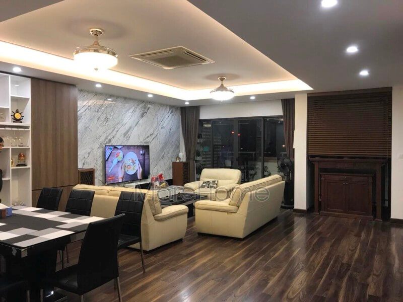 Thi công vách gỗ tivi tại phòng khách chung cư Imperia Garden Hà Nội