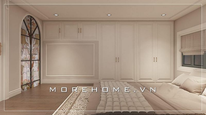 Mẫu tủ quần áo tân cổ điển màu trắng sang trọng cho phòng ngủ biệt thự gia chủ