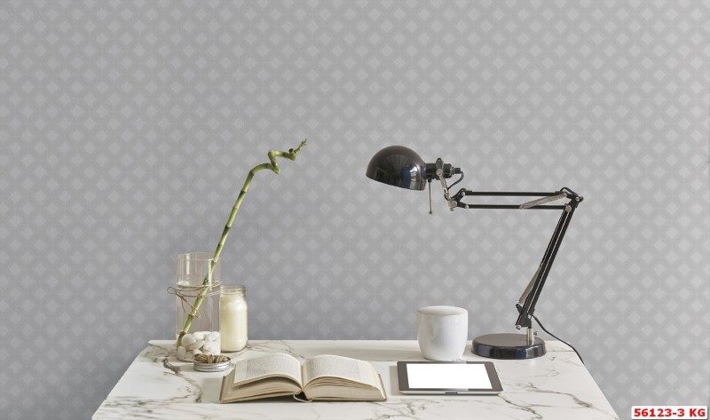 Bạn có thể sử dụng mẫu giấy dán tường họa tiết hình thoi màu trắng trong nền màu xám cho khu vực bàn làm việc tại nhà hoặc văn phòng làm việc.