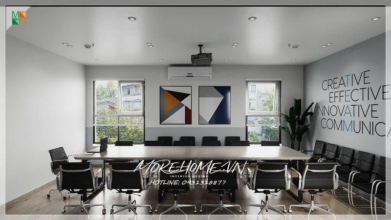 Thiết kế nội thất phòng họp văn phòng tiện nghi với bàn ghế sử dụng gỗ công nghiệp cao cấp