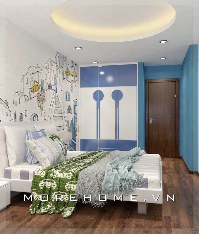 Để tạo nên không gian hiện đại trong phòng ngủ của con, bố trí nội thất phù hợp và tủ quần áo âm tường kịch trần sẽ giúp tăng thêm độ cao cho không gian.