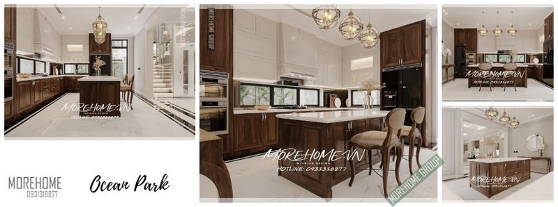 Vẻ đẹp đẳng cấp của thiết kế phòng bếp gỗ óc chó phong cách tân cổ điển sang trọng đều làm cho nó trở thành nơi hoàn hảo để gia đình sum họp và tiếp đãi khách quý.