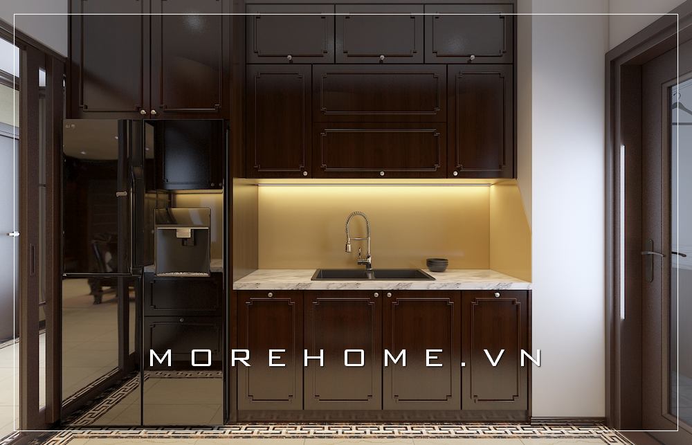 Thiết kế tinh tế tỉ mỉ của tủ bếp phong cách tân cổ điển đã hoàn toàn chinh phục khách hàng