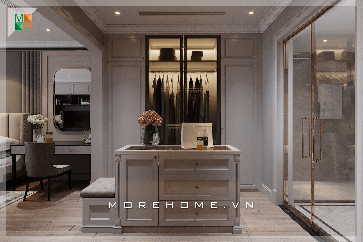 Thiết kế nội thất phòng thay đồ rất hiện đại và sang trọng phù hợp cho các nhà chung cư, nhà phố, biệt thự.